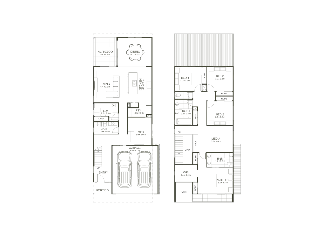 The Elba centres on clean architectural lines and generous open-plan living that flows seamlessly to the alfresco. A central kitchen anchors the home, while thoughtful zoning balances everyday connection with privacy and low-maintenance ease.