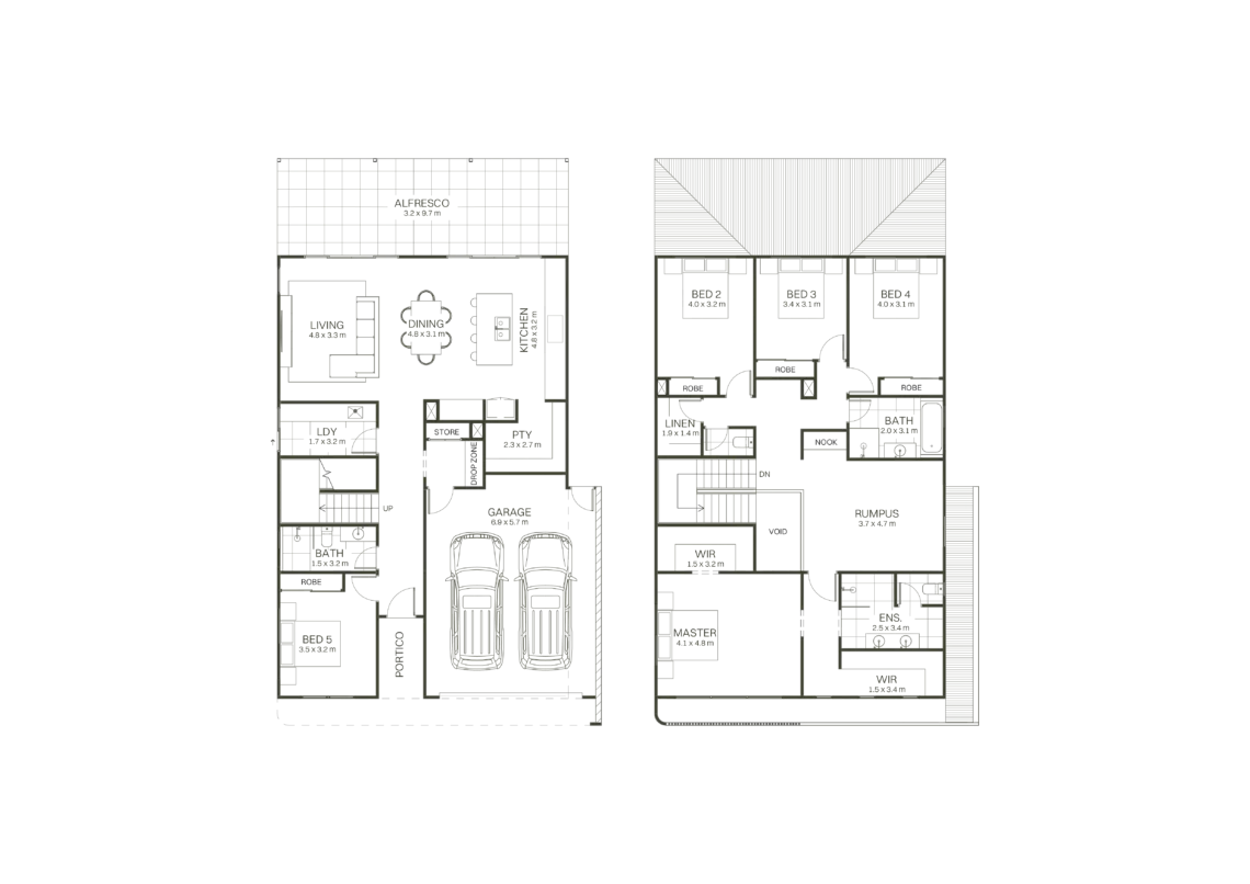 The Grange connects open-plan living to an oversized full-width alfresco, extending daily life outdoors. A front master suite offers separation, while a drop zone, butler’s pantry and ample storage bring practical ease to this balanced design.
