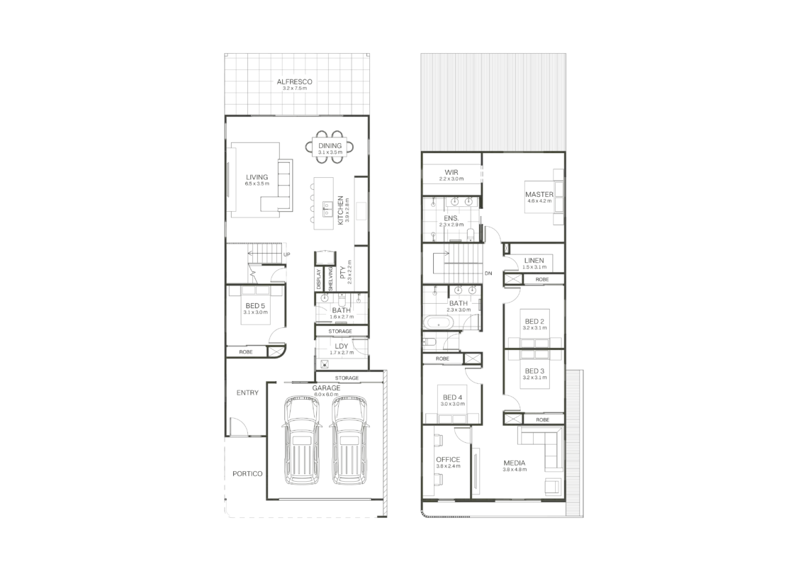 The Harold offers a well-balanced layout with open-plan living forming a natural hub for daily life. A rear master suite provides quiet retreat, while a dedicated media and office zone at the front adds flexibility to this generous family home.